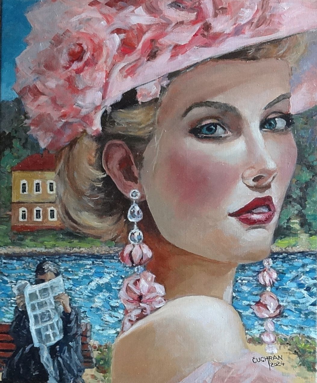 "Dievča v rúžovom na nábreží" je obrazom ticha medzi dvoma dušami. Na prvý pohľad pôsobí ako výjav z bežného dňa – ona a on na brehu rieky, každý vo svojom svete. No zdanlivá nevšímavosť je len závojom: pod povrchom sa odohráva dialóg, ktorý nevyžaduje slová.